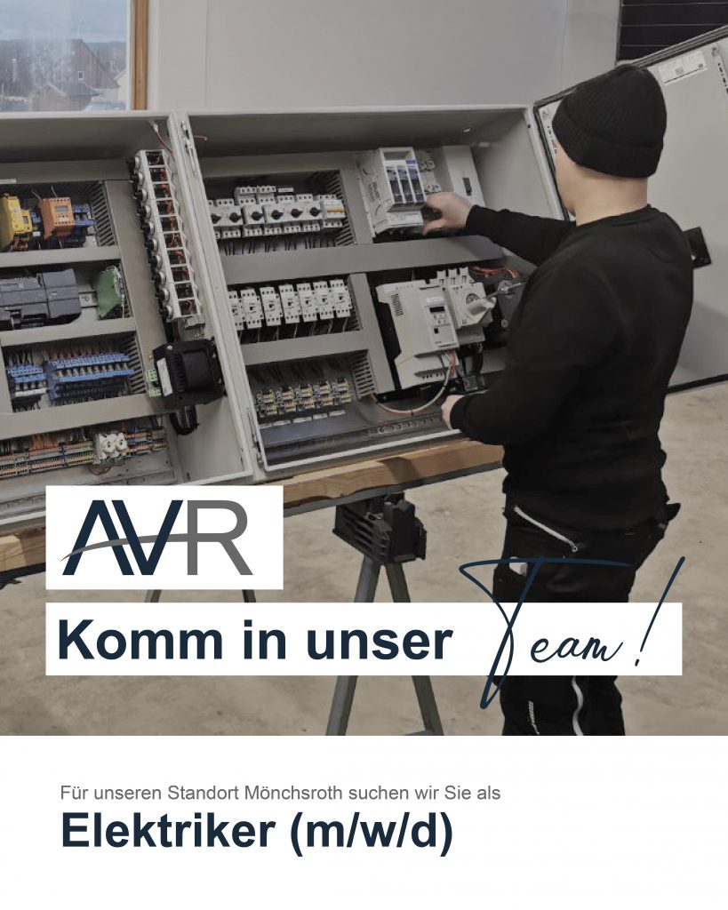 Für die AVR Rettenmeier GmbH suchen wir eine/n Kollegen/in im Bereich Elektrotechnik. Einsatzort Mönchsroth/Tannhausen Einstiegstermin ab sofort Arbeitszeit Vollzeit IHR PROFIL Abgeschlossene Ausbildung als Elektriker, Elektroniker oder in einem vergleichbaren Beruf Leidenschaft für Leistung und Freude an abwechslungsreichen Projekten Selbstständiger, strukturierter und lösungsorientierter Teamplayer mit der Fähigkeit Verantwortung zu übernehmen Führerscheinklasse B IHRE AUFGABEN Photovoltaik-AnlagenPlanung, […]
